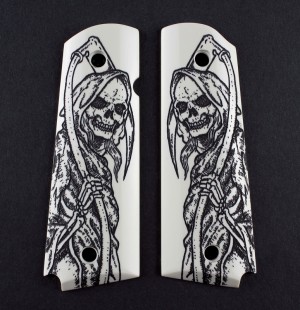 4. 1911 Govt. Model Scrimshaw Ivory Polymer - Grim Reaper Full-Body X2 - Ambi-Cut